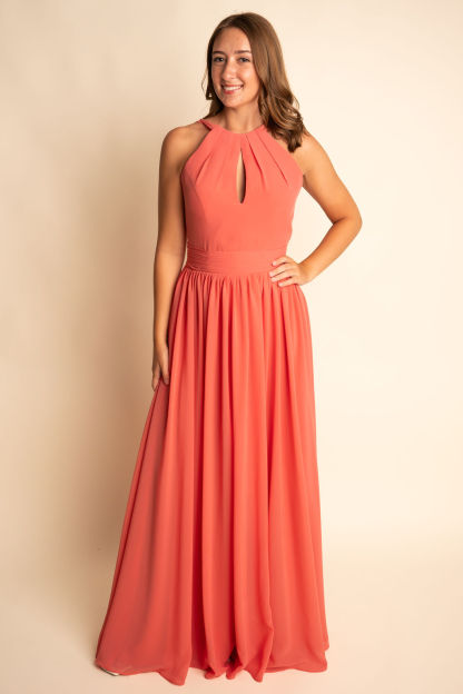 A-Line Illusion Chiffon Floor-Length Side Slit Bridesmaid Dress #RJBM052